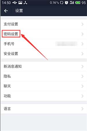 3)进入设置界面后,再选择”密码设置“选项。