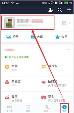 1)首先我们打开手机支付宝,打开后,点击下方”我的“,再点击上方我们自己的头像。