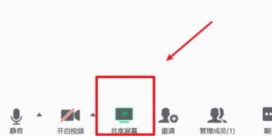 4、这时让会议成员点开会议下方的“共享屏幕”功能,即可进入你的共享画面