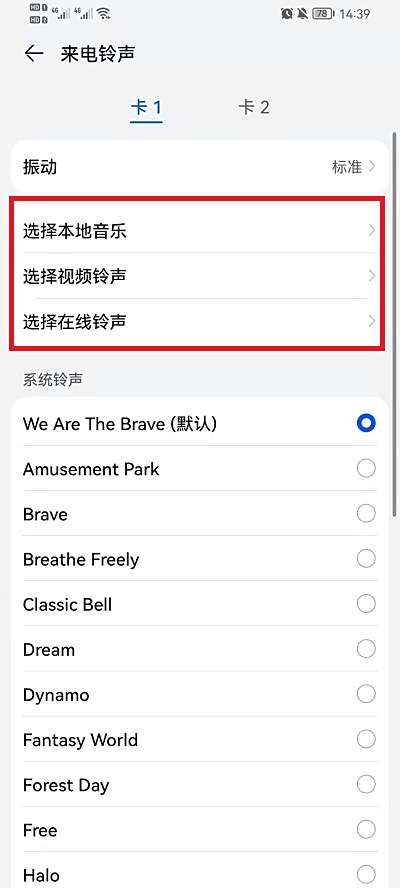 第三步:然后在上方会有三种不同的选择铃声的方式,我们选择最适合自己的一种进入其中,然后找到准备好的铃声使用即可。