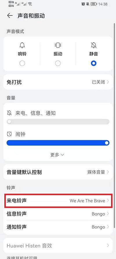 第二步:在其声音功能界面中,可以看到下方有来电铃声功能,点击进入其中;