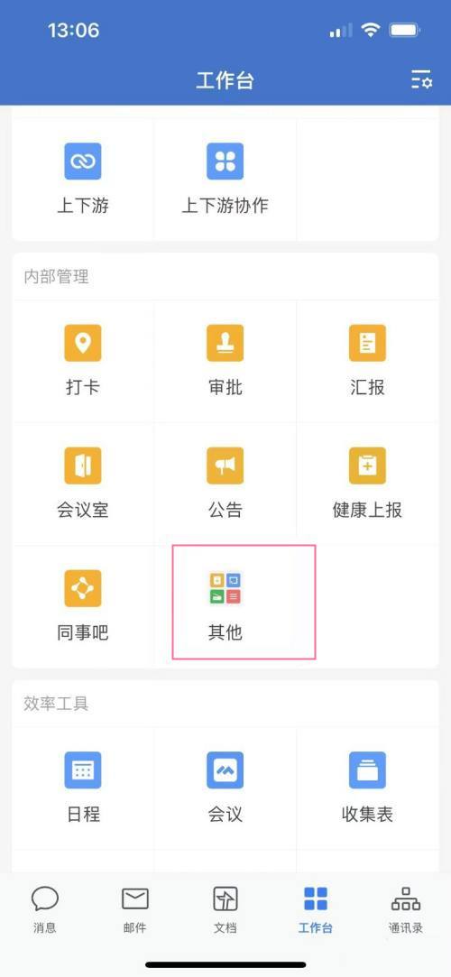 1、打开企业微信,在“工作台”界面,点击其他。