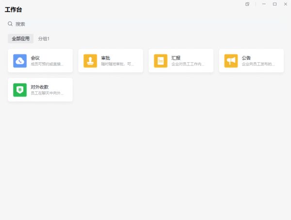 企业微信作为统一的办公入口,集成公司内部的全部系统如:HR系统、OA系统、CRM系统、ERP系统等,无需费时费力的寻找,工作台中展示的功能清晰明了,分类明确,方便于员工及管理人员的操作。