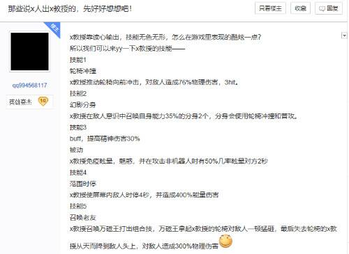 呼吁游戏中出X教授英雄,技能是“轮椅冲撞”的出来……你们够了……