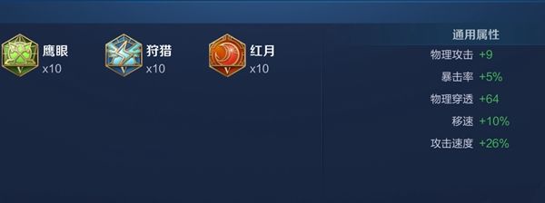 3、第一套铭文:10红月、10狩猎、10鹰眼