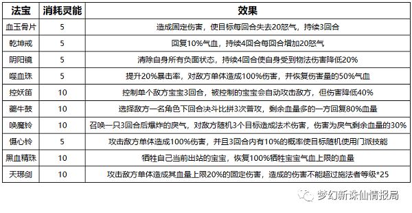 (1)使用主动法宝需要消耗灵能,进入战斗自动获得3点法宝灵能,之后每回合增加1点,上限10点。