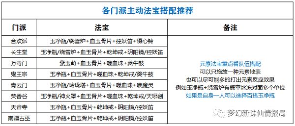 梦幻新诛仙各门派主动法宝搭配推荐主动法宝一共有16个,其中元素法宝5个。元素反应的搭配反应可以前往之前的攻略查看详细