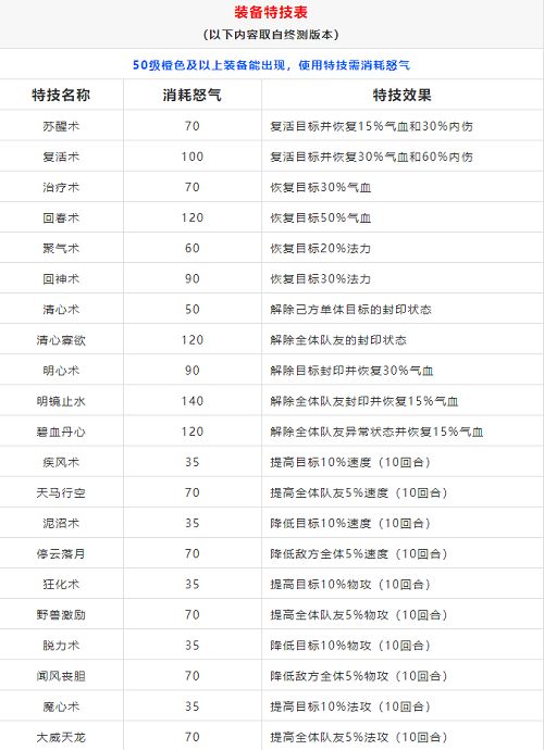 1、每个特技根据效果的不同,施放时所需要的怒气也不同,怒气越多效果相对越好。