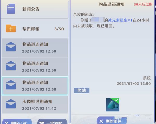 重点来了!多余的元素我们可以赠送给朋友,然后告诉他不要领取!过了24小时这些元素就会退回来的!当然你也可以送给小号,这样加上隔天获得的元素,可以很轻松就完成全部元素的兑换喔!