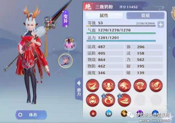 (2)白鹿变异后,如果资质不行就需要继续用洗髓丹进行洗练,洗一次需要8个洗髓丹!直到物攻达到1400以上,速度达到1300左右,成长达到1.110左右,同时满足这三项即可视为洗练合格,千万别洗上头,有可能一只变异白鹿就让你一贫如洗!
