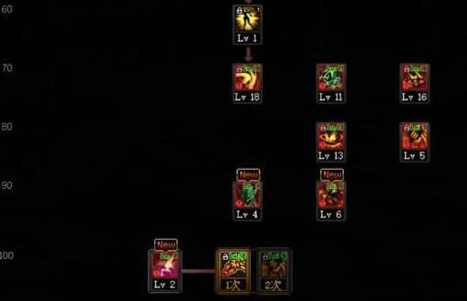 我们选择了放弃两个鞭子技能,反而将其他几个小技能点满,这里是因为两个鞭子的释放时间比较占用输出的时间,而且伤害和CD在100级版本中并不是非常的出色,所以我们选择几个技能CD短的技能来打小爆发。