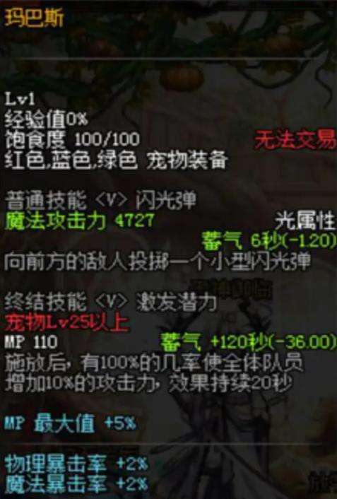 以上就是小编为大家带来的"dnf闪光弹是哪个宠物独有的技能 宠物玛巴斯技能及获得途径介绍"全部内容了,更多资讯请关注te5.cn。