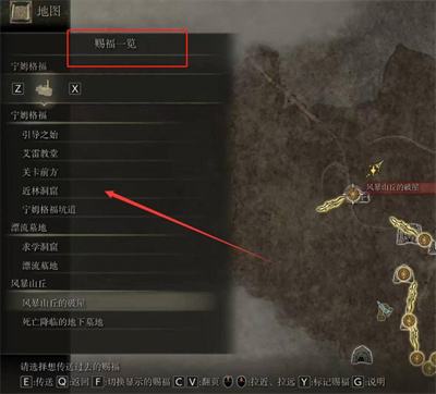 2、按F键打开“赐福一览”,然后便显示可以赐福的位置。