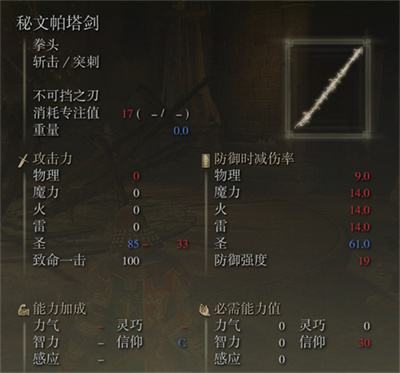 圆桌厅堂中有很多NPC,还有铁匠可以帮助你更好的强化武器,在打镰刀入侵者旁边的小屋内还可以获得一把秘文帕塔剑,需要30的信仰。