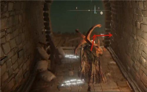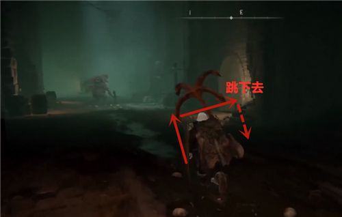 跳下来之后视角往背后拉,从右边跳下去,往下图所示的方向走。