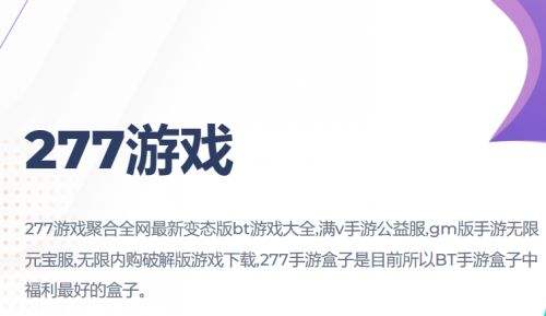 277手游平台是一款游戏盒子还是一个手游充值折扣平台,含有大量的高福利游戏,折扣游戏,BT游戏,变态版手游,赶紧来下载277手游app,不但有好玩的手游,而且可以享受超低的游戏充值折扣!