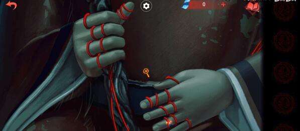 5、来到有老爷爷的门口,使用剪刀剪断红线,就可以开门获得一串红线。