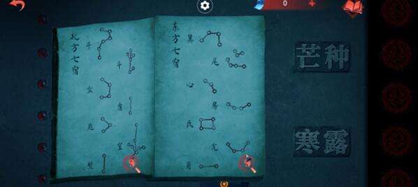 12、将获得镜子取下,放在上面的位置,会有光,等待女主把石床打开,根据男女主两本书的线索调整光照角度,就是镜子上的日期对应的图案是那个节气的字,就点亮那个。