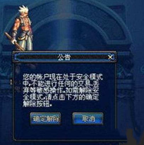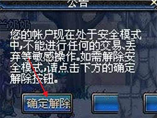 进入游戏界面后,如果看见以下提示则表示账号进入了安全模式,需要您验证密保进行解除。