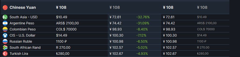 目前最低价的区为巴基斯坦,售价为72.61元。