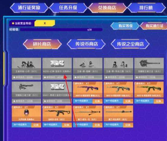 4、在通行证等级到达200级时就可以解锁,然后使用传说币进行兑换,有150个碎片后即可兑换幻神音效卡。