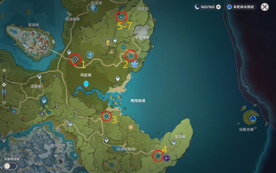 四风神庙和仲夏庭院副本可以获得7个,位置如图: